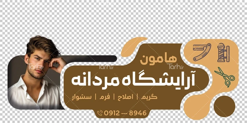 طرح استیکر آماده آرایشگاه مردانه با فرمت psb و قابل ویرایش در نرم افزار فتوشاپ به صورت لایه باز توسط تیم طراحان طرح دات آی آر طراحی شده است. در طرح استیکر تبلیغاتی مغازه سلمانی از تصاویر و المان های با کیفیت و متناسب با استاندارد چاپ استفاده شده، همچنین نکات مهم در طرح لایه باز استیکر آرایشگاه مردانه مانند رنگ بندی، رعایت حاشیه، فاصله ها، سایز و نوع فونت مناسب طراحی استیکر و ... رعایت گردیده است. طرح برچسب روی شیشه آرایشگاه مردانه شامل عنوان آرایشگاه و عکس مدل مرد می باشد و المان های استفاده شده در طرح استیکر آرایشگاه و پیرایش مردانه قابلیت ویرایش، جابه جایی و تغییر سایز را دارا بوده و شما می توانید متناسب با سلیقه خودتان طرح برچسب دیواری آرایشگاه مردانه را ویرایش نمایید، همچنین با تغییر تصاویر و متن ها می توانید طرح استیکر آرایشگاه آقایان را به طرح استیکر شغل مورد نظر خود تبدیل نمایید.