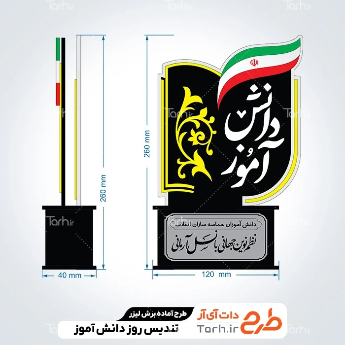 فایل لیزر تندیس 13 آبان روز دانش آموز با نرم افزار Corel Draw به صورت لایه باز و قابل ویرایش توسط تیم طراحان طرح دات آی آر طراحی شده است. در طرح آماده برش لیزری استند روز دانش آموز و 13 آبان نکات مهم طراحی لیزر مانند رعایت ضخامت چوب، ابعاد استاندارد طرح و چیدمان درست برای کمترین پرتی رعایت گردیده است. طرح برش لیزری تندیس 13 آبان، آماده اجرا توسط دستگاه های برش، سی ان سی (CNC)، حکاکی لیزر و حکاکی روی چوب میباشد. شما میتوانید از طرح لیزر روز دانش آموز جهت تولید انواع تندیس و استند روز دانش آموز به عنوان هدیه 13 آبان استفاده کنید.