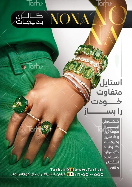 طرح تراکت آماده بدلیجات شامل عکس انگشتر و دستبند کد فایل 0156479