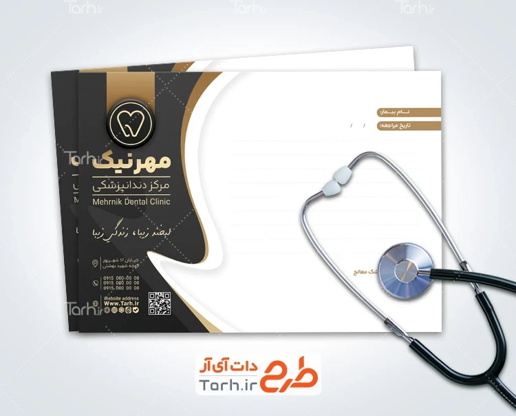 فایل لایه باز سرنسخه دندانپزشکی با تم مشکی طلایی کد فایل 0162498