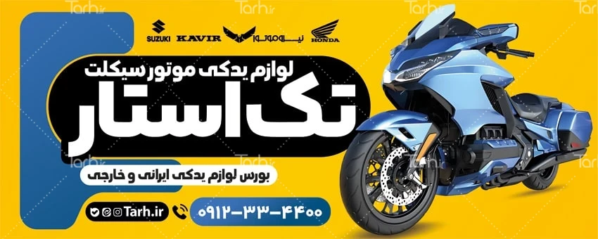 طرح آماده بنر لوازم یدکی موتورسیکلت با فرمت psd و قابل ویرایش در نرمافزار فتوشاپ بهصورت لایه باز توسط تیم طراحان طرح دات آی آر طراحی شده است. در طرح لایه باز بنر لوازم یدکی موتور سیکلت از تصاویر و المانهای باکیفیت و متناسب با استاندارد چاپ استفادهشده، همچنین نکات مهم در طرح بنر مشاغل مانند رنگبندی، رعایت حاشیه، فاصلهها، سایز و نوع فونت مناسب طراحی تابلو مشاغل و ... رعایت گردیده است. طرح بنر لوازم یدکی موتور سیکلت شامل عکس موتور میباشد که المانهای استفادهشده در طرح تابلو فروش قطعات یدکی موتور قابلیت ویرایش، جابهجایی و تغییر سایز را دارا بوده و شما میتوانید متناسب باسلیقه خودتان طرح بنر تبلیغاتی لوازم یدکی موتور سیکلت را ویرایش نمایید، همچنین با تغییر تصاویر و متنها میتوانید طرح تابلو فروش لوازم و قطعات یدکی موتور را به طرح تابلوی شغل موردنظر خود تبدیل نمایید.