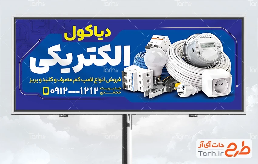 طرح لایه باز بنر لوازم الکتریکی با فرمت psd و قابل ویرایش در نرمافزار فتوشاپ بهصورت لایه باز توسط تیم طراحان طرح دات آی آر طراحی شده است. در طرح بنر لوازم الکتریکی از تصاویر و المانهای باکیفیت و متناسب با استاندارد چاپ استفادهشده، همچنین نکات مهم در بنر لایه باز مشاغل مانند رنگبندی، رعایت حاشیه، فاصلهها، سایز و نوع فونت مناسب طراحی تابلو مشاغل و ... رعایت گردیده است. طرح بنر بیلبورد لوازم الکتریکی شامل عکس لوازم برقی و متن تبلیغاتی فروشگاه کالای برق میباشد که المانهای استفادهشده در طرح تابلو لوازم الکترونیکی قابلیت ویرایش، جابهجایی و تغییر سایز را دارا بوده و شما میتوانید متناسب باسلیقه خودتان طرح بنر تبلیغاتی لوازم الکتریکی را ویرایش نمایید، همچنین با تغییر تصاویر و متنها میتوانید طرح لایه باز تابلو تبلیغاتی کالای برق را به طرح تابلوی شغل موردنظر خود تبدیل نمایید.
