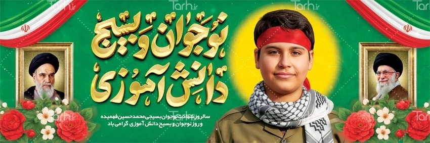 طرح بنر پلاکارد روز نوجوان با فرمت psd و قابل ویرایش در نرم افزار فتوشاپ به صورت لایه باز توسط تیم طراحان طرح دات آی آر طراحی شده است. در طرح لایه باز هفته بسیج دانش آموزی از تصاویر و المان های با کیفیت و متناسب با استاندارد چاپ استفاده گردیده است. طرح بنر روز نوجوان شامل خوشنویسی نوجوان و بسیج دانش آموزی، قاب عکس امام خمینی و رهبری می باشد که المان های استفاده شده در بنر لایه باز روز نوجوان قابلیت ویرایش، جابه جایی و تغییر سایز را دارا بوده و شما می توانید متناسب با سلیقه خودتان طرح روز بسیج دانش آموزی را ویرایش نمایید.