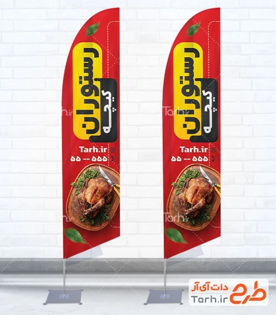 طرح لایه باز پرچم بادبانی رستوران و کبابی با فرمت psd و قابل ویرایش در نرم افزار فتوشاپ به صورت لایه باز توسط تیم طراحان طرح دات آی آر طراحی شده است. در طرح پرچم ساحلی رستوران از تصاویر و المان های با کیفیت و متناسب با استاندارد چاپ استفاده گردیده است. طرح پرچم ساحلی هلالی رستوران شامل عکس مرغ بریان می باشد که المان های استفاده شده در طرح استند پرچمی ایستاده رستوران و کبابی قابلیت ویرایش، جابه جایی و تغییر سایز را دارا بوده و شما میتوانید متناسب با سلیقه خودتان طرح لایه باز پرچم ساحلی و بنر رستوران را ویرایش نمایید.