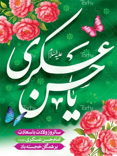 پوستر میلاد امام حسن عسکری لایه باز با فرمت psd و قابل ویرایش در نرم افزار فتوشاپ به صورت لایه باز توسط تیم طراحان طرح دات آی آر طراحی شده است. در طرح لایه باز ولادت امام حسن عسکری از تصاویر و المان های با کیفیت و متناسب با استاندارد چاپ استفاده گردیده است. طرح لایه باز بنر ولادت امام حسن عسکری شامل تایپوگرافی یا حسن عسکری، متن تبریک ولادت امام حسن عسکری و وکتور گل می باشد که المان های استفاده شده در پوستر لایه باز ولادت امام حسن عسکری قابلیت ویرایش، جابه جایی و تغییر سایز را دارا بوده و شما می توانید متناسب با سلیقه خودتان طرح لایه باز ولادت امام حسن عسکری را ویرایش نمایید.