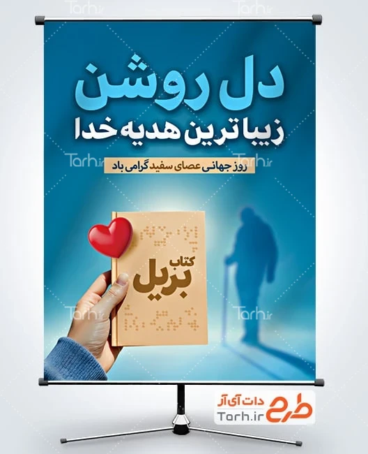طرح پوستر روز جهانی عصای سفید لایه باز با فرمت psd و قابل ویرایش در نرم افزار فتوشاپ به صورت لایه باز توسط تیم طراحان طرح دات آی آر طراحی شده است. در طرح لایه باز روز نابینایان از تصاویر و المان های با کیفیت و متناسب با استاندارد چاپ استفاده گردیده است. پوستر تبریک روز عصای سفید لایه باز شامل عکس دست، کتاب بریل و متن دل روشن زیباترین هدیه خدا می باشد که المان های استفاده شده در بنر روز نابینا قابلیت ویرایش، جابه جایی و تغییر سایز را دارا بوده و شما می توانید متناسب با سلیقه خودتان طرح بنر روز عصای سفید را ویرایش نمایید.