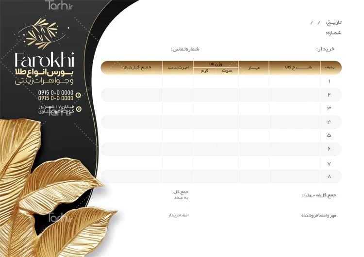 - دسته بندی : فاکتور طلا فروشی و جواهری