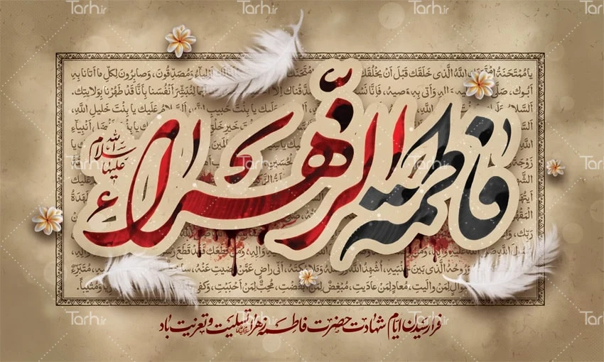 طرح لایه باز بنر جایگاه شهادت حضرت زهرا با فرمت psd و قابل ویرایش در نرم افزار فتوشاپ به صورت لایه باز توسط تیم طراحان طرح دات آی آر طراحی شده است. در طرح لایه باز بنر شهادت حضرت زهرا از تصاویر و المان های با کیفیت و متناسب با استاندارد چاپ استفاده گردیده است. طرح کتیبه فاطمیه شامل خوشنویسی فاطمه الزهرا و متن زیارت حضرت فاطمه زهرا (س) میباشد که المان های استفاده شده در طرح بنر پشت مداح شهادت حضرت فاطمه قابلیت ویرایش، جابه جایی و تغییر سایز را دارا بوده و شما می توانید متناسب با سلیقه خودتان طرح بنر پشت منبر فاطمیه را ویرایش نمایید.