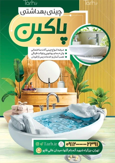 طرح psd تراکت چینی بهداشتی با فرمت psd و قابل ویرایش در نرمافزار فتوشاپ بهصورت لایه باز توسط تیم طراحان طرح دات آی آر طراحی شده است. در نمونه تراکت کاشی فروشی از تصاویر و المانهای باکیفیت و متناسب با استاندارد چاپ استفادهشده، همچنین نکات مهم در طرح تراکت چینی بهداشتی مانند رنگبندی، رعایت حاشیه، فاصلهها، فضای کافی برای درج متن، سایز و نوع فونت مناسب طراحی تراکت و ... رعایت گردیده است. طرح لایه باز تراکت فروش چینی بهداشتی شامل عکس روشویی میباشد که المانهای استفادهشده در طرح تراکت کاشی و سرامیک قابلیت ویرایش، جابهجایی و تغییر سایز را دارا بوده و شما میتوانید متناسب باسلیقه خودتان تراکت لایه باز چینی بهداشتی را ویرایش نمایید، همچنین با تغییر تصاویر و متنها میتوانید طرح تراکت فروشگاه سرویس بهداشتی را به طرح تراکت کسب و کار مد نظر خود شخصی سازی نمایید.