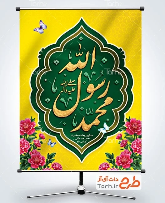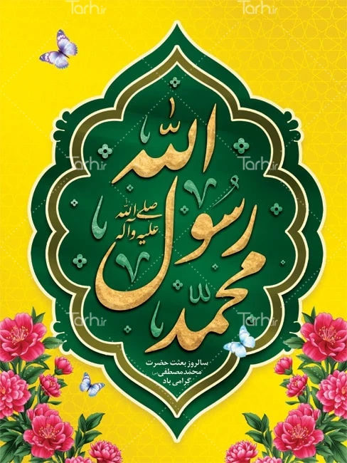 طرح پوستر تبریک عید مبعث با تایپوگرافی محمد رسول الله کد فایل 0314287