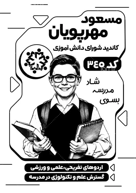 فایل لایه باز تراکت ریسو انتخابات شورای دانش آموزی با فرمت psd، مد رنگی گری اسکیل(Grayscale) و قابل ویرایش در نرمافزار فتوشاپ بهصورت لایه باز توسط تیم طراحان طرح دات آی آر طراحی شده است. در نمونه تراکت سیاه و سفید انتخابات شورای دانش آموزی از تصاویر و المانهای باکیفیت و متناسب با استاندارد چاپ استفادهشده، همچنین نکات مهم در طرح تراکت سیاه سفید شورای دانش آموزی مانند رنگبندی، رعایت حاشیه، فاصلهها، فضای کافی برای درج متن، سایز و نوع فونت مناسب طراحی تراکت ریسو و ... رعایت گردیده است. طرح لایه باز تراکت سیاه سفید انتخابات شورای مدرسه شامل وکتور سیاه سفید دانش آموز میباشد که المانهای استفادهشده در طرح تراکت سیاه سفید انتخابات شورای مدرسه قابلیت ویرایش، جابهجایی و تغییر سایز را دارا بوده و شما میتوانید متناسب باسلیقه خودتان تراکت سیاه و سفید انتخابات شورای دانش آموزی را ویرایش نمایید، همچنین با تغییر تصاویر و متنها میتوانید طرح تراکت سیاه سفید کاندیدای شورای مدرسه را به طرح تراکت ریسو کسب و کار مد نظر خود شخصی سازی نمایید.