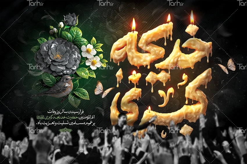 طرح بنر پشت منبری رحلت حضرت خدیجه با فرمت psd و قابل ویرایش در نرم افزار فتوشاپ به صورت لایه باز توسط تیم طراحان طرح دات آی آر طراحی شده است. در بنر لایه باز رحلت حضرت خدیجه کبری از تصاویر و المان های با کیفیت و متناسب با استاندارد چاپ استفاده گردیده است. بنر پشت منبری وفات حضرت خدیجه شامل خوشنویسی خدیجه کبری می باشد که المان های استفاده شده در بنر لایه باز وفات حضرت خدیجه کبری قابلیت ویرایش، جابه جایی و تغییر سایز را دارا بوده و شما می توانید متناسب با سلیقه خودتان طرح دکور کتیبه رحلت حضرت خدیجه کبری را ویرایش نمایید.