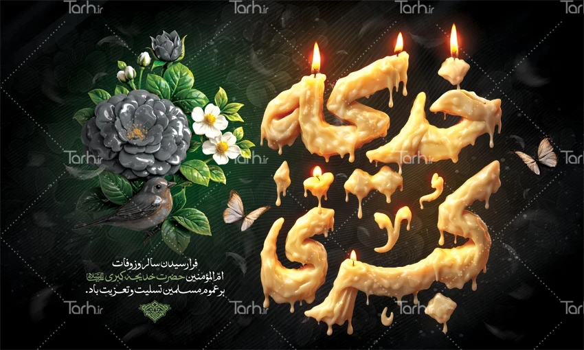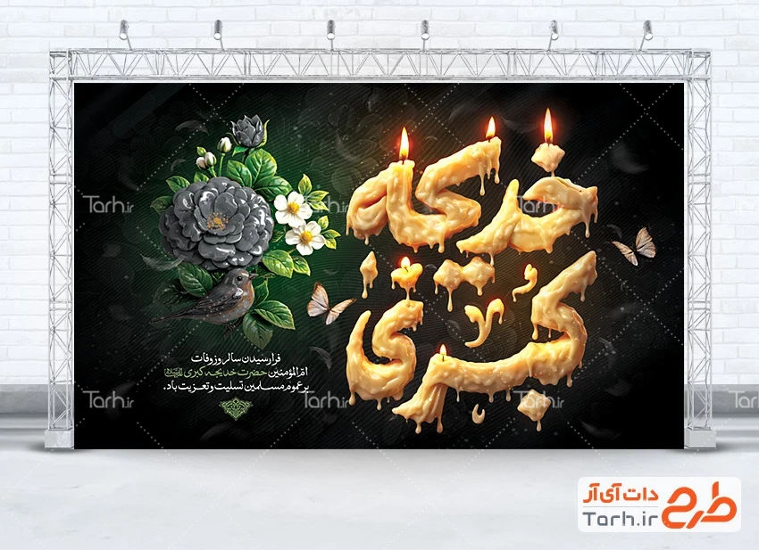 طرح بنر پشت منبری رحلت حضرت خدیجه شامل خوشنویسی خدیجه کبری کد فایل 0359621
