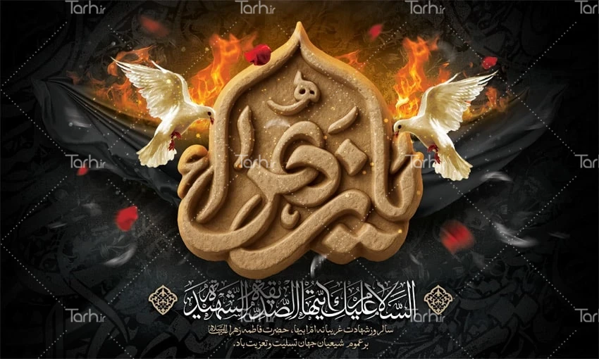 طرح لایه باز بنر پشت سن شهادت حضرت فاطمه با فرمت psd و قابل ویرایش در نرم افزار فتوشاپ به صورت لایه باز توسط تیم طراحان طرح دات آی آر طراحی شده است. در طرح لایه باز بنر شهادت حضرت زهرا از تصاویر و المان های با کیفیت و متناسب با استاندارد چاپ استفاده گردیده است. طرح کتیبه فاطمیه شامل عکس کبوتر، خوشنویسی یا زهرا و وکتور گل میباشد که المان های استفاده شده در طرح بنر پشت مداح شهادت حضرت فاطمه قابلیت ویرایش، جابه جایی و تغییر سایز را دارا بوده و شما می توانید متناسب با سلیقه خودتان طرح بنر پشت منبر فاطمیه را ویرایش نمایید.