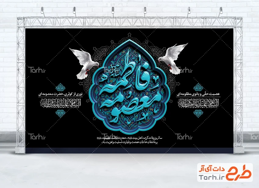 طرح بنر جایگاه رحلت حضرت معصومه با فرمت psd و قابل ویرایش در نرم افزار فتوشاپ به صورت لایه باز توسط تیم طراحان طرح دات آی آر طراحی شده است. در پشت منبری لایه باز وفات حضرت معصومه از تصاویر و المان های با کیفیت و متناسب با استاندارد چاپ استفاده گردیده است. طرح بنر پشت منبری وفات حضرت معصومه شامل تایپوگرافی فاطمه معصومه و عکس کبوتر می باشد که المان های استفاده شده در طرح بنر لایه باز رحلت حضرت معصومه قابلیت ویرایش، جابه جایی و تغییر سایز را دارا بوده و شما می توانید متناسب با سلیقه خودتان طرح بنر جایگاه رحلت حضرت معصومه را ویرایش نمایید.