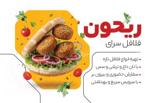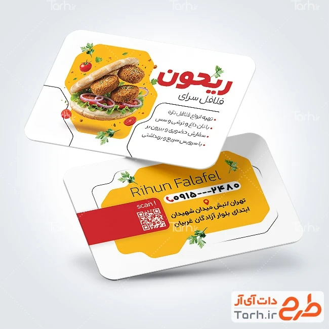 فایل کارت ویزیت فلافلی با رنگ زمینه سفید کد فایل 0379481
