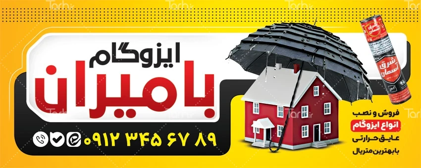 بنر خام ایزوگام و عایق حرارتی با فرمت psd و قابل ویرایش در نرمافزار فتوشاپ بهصورت لایه باز توسط تیم طراحان طرح دات آی آر طراحی شده است. در طرح لایه باز بنر ایزوگام فروشی از تصاویر و المانهای باکیفیت و متناسب با استاندارد چاپ استفادهشده، همچنین نکات مهم در طرح تابلو مغازه مانند رنگبندی، رعایت حاشیه، فاصلهها، سایز و نوع فونت مناسب طراحی تابلو مشاغل و ... رعایت گردیده است. طرح بنر ایزوگام فروشی شامل عکس ایزوگام و عایق میباشد که المانهای استفادهشده در طرح تابلو تبلیغاتی فروشگاه ایزوگام قابلیت ویرایش، جابهجایی و تغییر سایز را دارا بوده و شما میتوانید متناسب باسلیقه خودتان طرح بنر تبلیغاتی ایزوگام و عایق حرارتی را ویرایش نمایید، همچنین با تغییر تصاویر و متنها میتوانید طرح تابلو ایزوگام و قیرگونی را به طرح تابلوی شغل موردنظر خود تبدیل نمایید.