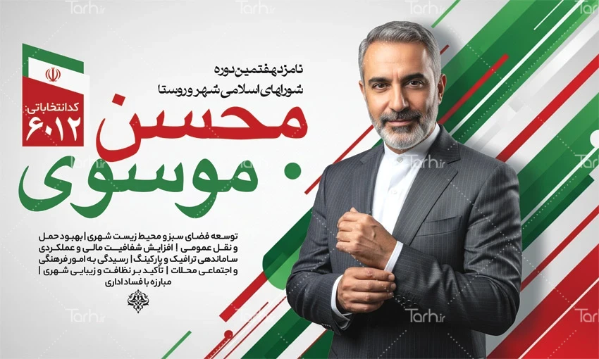 طرح آماده بنر کاندید انتخاباتی شورای شهر دارای محل جایگذاری عکس کاندید کد فایل 0412879