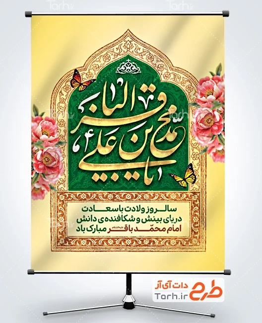 ابعاد قابل چاپ بنر لایه باز ولادت امام باقر و کاربرد آن