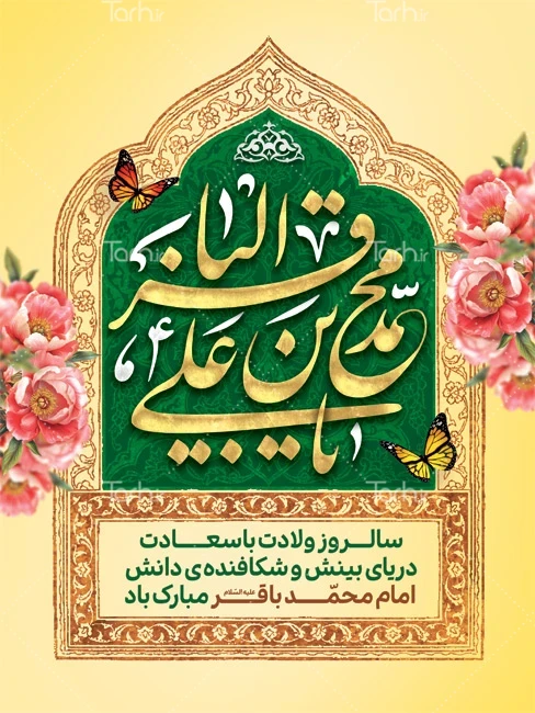 طرح پوستر خام ولادت امام باقر دارای وکتور گل کد فایل 0413527