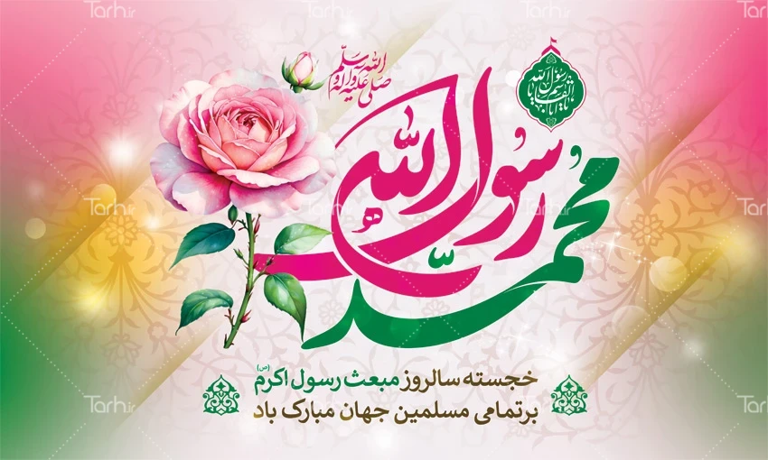 بنر پشت منبری جشن عید مبعث با تایپوگرافی محمد رسول الله کد فایل 0429178