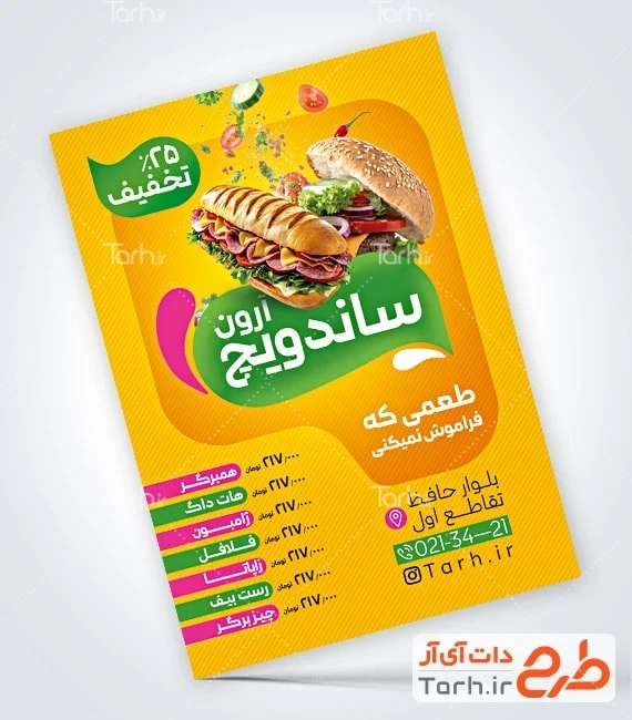 - دسته بندی : تراکت ساندویچ، فست فود و پیتزا