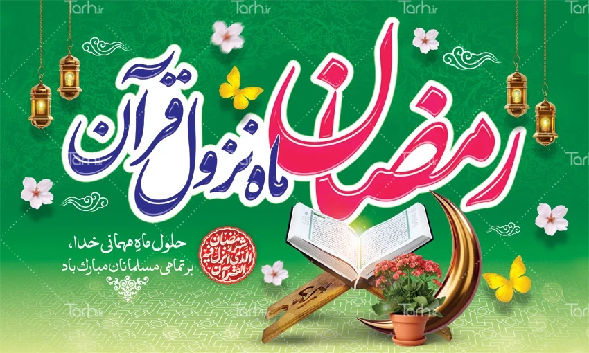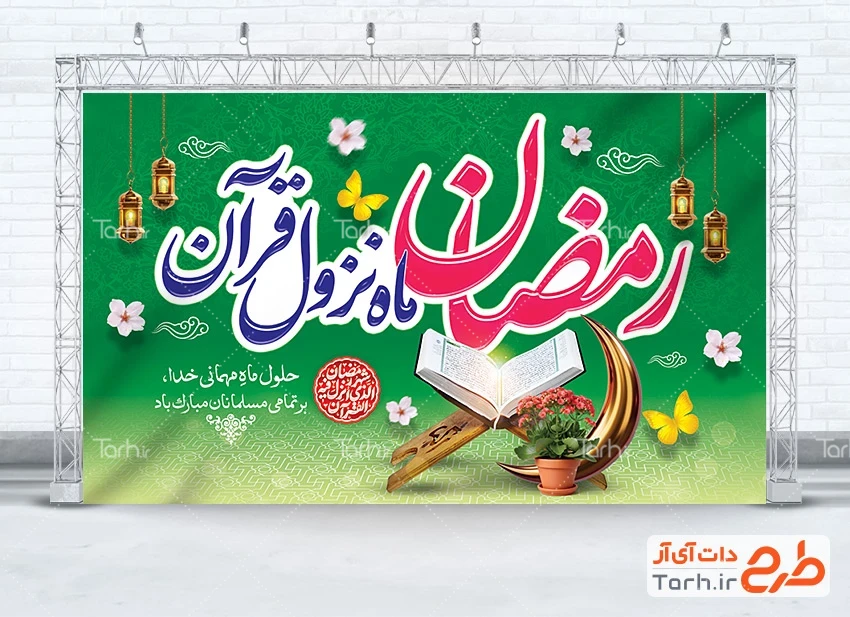 دانلود بنر جایگاه حلول ماه رمضان با تایپوگرافی رمضان ماه نزول قرآن کد فایل 0465819