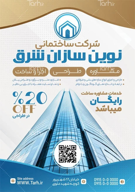 ابعاد طرح تراکت تبلیغاتی شرکت ساختمانی در جدول ویژگیهای فایل درجشده و با توجه به لایه باز بودن و کیفیت بالای طرح شرکت ساختمانی، قابلیت ویرایش و تبدیل به سایز دلخواه، همچنین چاپ روی متریالهای مختلف مانند بنر، کاغذ، گلاسه و ... را دارا میباشد. برای مثال تراکت خام شرکت خدمات ساختمانی در ابعاد A4 رزولوشن 300 dpi قابلیت چاپ بنر و لارج فرمت در ابعاد بزرگتر مانند 3 در 4 متر و بدون افت کیفیت را دارا میباشد. پوستر تبلیغاتی ها به عنوان یک ابزار تبلیغاتی بسیار موثر محسوب می شوند و به دلیل هزینه کم و تأثیر بالا، در بسیاری از کسب و کارها به عنوان روشی برای تبلیغات و رویدادهای مختلف مورد استفاده قرار می گیرند.