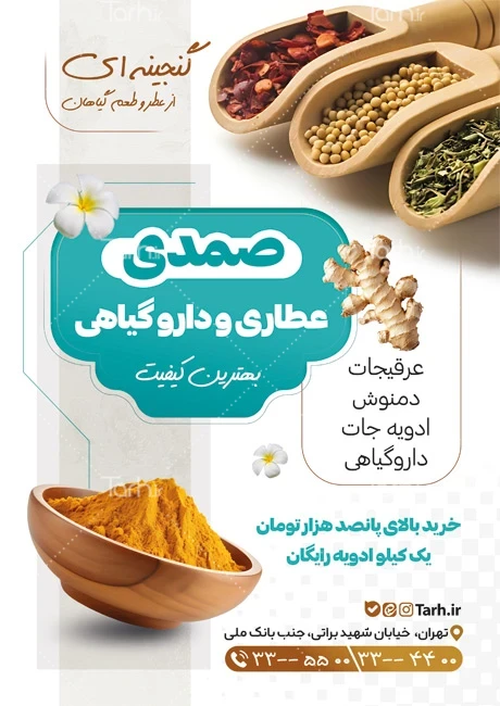 طرح خام تراکت عطاری دارای عکس ظرف زردچوبه کد فایل 0476893