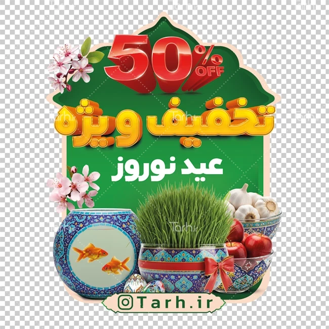 طرح استیکر تخفیف عید نوروز لایه باز با عکس سفره هفت سین کد فایل 0526149