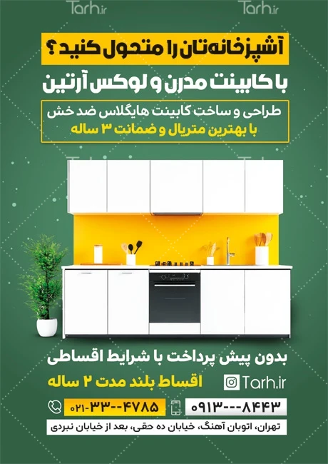 دانلود طرح لایه باز تراکت کابینت سازی دارای تصویر کابینت آشپرخانه کد فایل 0536891