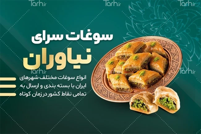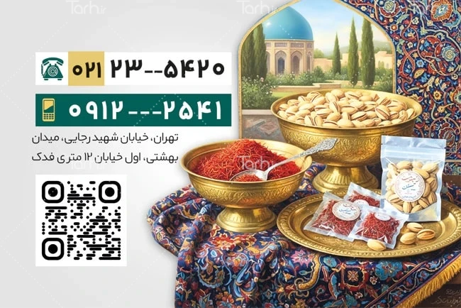 طرح خام کارت ویزیت فروشگاه سوغات با عکس پسته و زعفران کد فایل 0562493