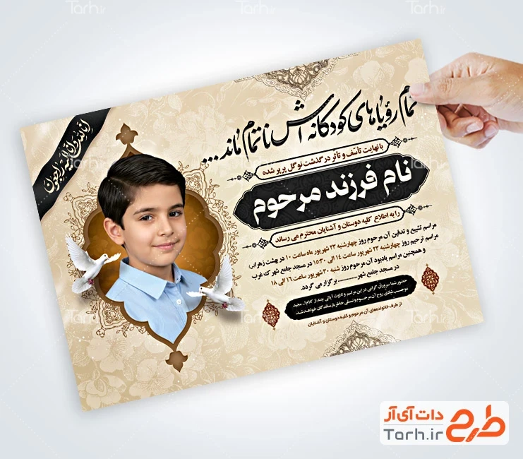 ابعاد قابل چاپ اعلامیه ترحیم کودک و کاربرد آن