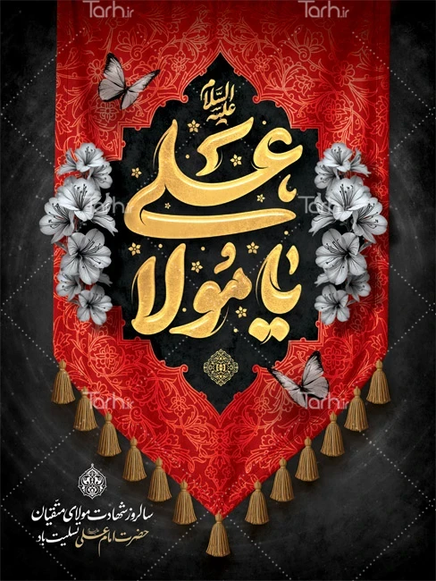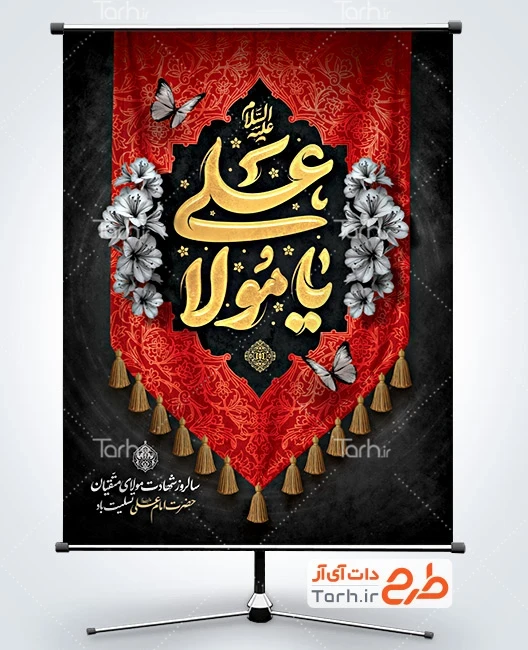 طرح آماده بنر شهادت امام علی با تایپوگرافی یا مولا علی کد فایل 0567198