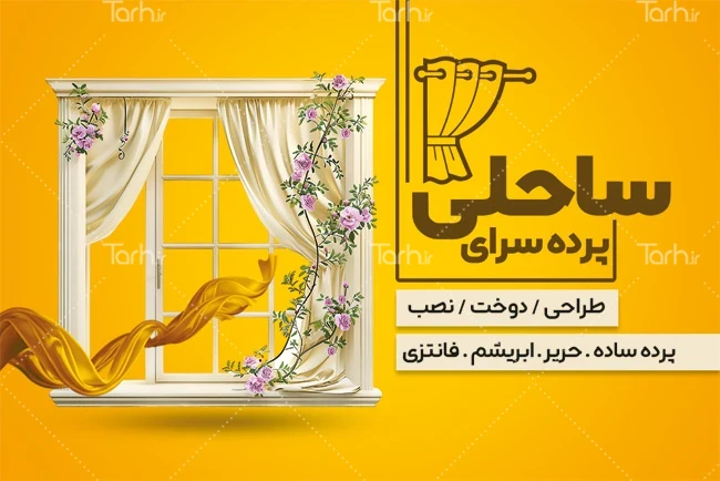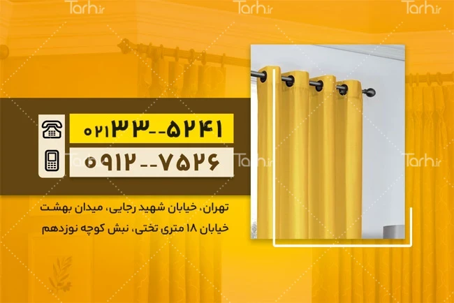 کارت ویزیت تبلیغاتی گالری پرده با تم زرد کد فایل 0572831