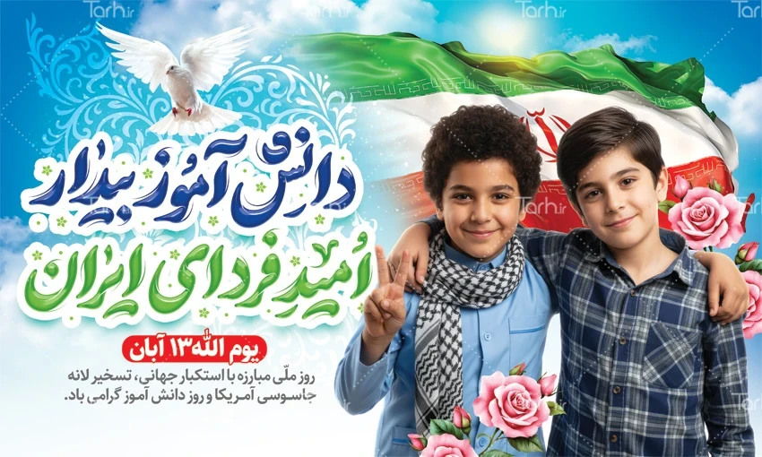 بنر خام 13 آبان و روز دانش آموز با خوشنویسی دانش آموز بیدار امید فردای ایران کد فایل 0584739