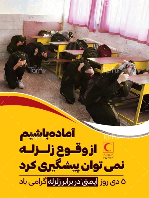 طرح بنر خام هفته ایمنی در برابر زلزله دارای عکس کلاس دخترانه کد فایل 0587491