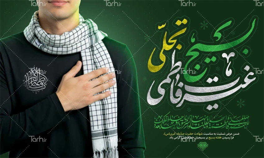 طرح بنر خام هفته بسیج با تایپوگرافی بسیج تجلی غیرت فاطمی کد فایل 0643728