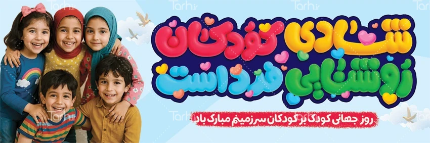 طرح لایه باز پلاکارد روز جهانی کودک با فرمت psd و قابل ویرایش در نرم افزار فتوشاپ به صورت لایه باز توسط تیم طراحان طرح دات آی آر طراحی شده است. در طرح لایه باز پلاکارد روز کودک از تصاویر و المان های با کیفیت و متناسب با استاندارد چاپ استفاده گردیده است. طرح بنر روز کودک شامل عکس کودکان و تایپوگرافی شادی کودکان روشنایی فرداست می باشد که المان های استفاده شده در بنر لایه باز روز کودک قابلیت ویرایش، جابه جایی و تغییر سایز را دارا بوده و شما می توانید متناسب با سلیقه خودتان طرح روز جهانی کودک را ویرایش نمایید.