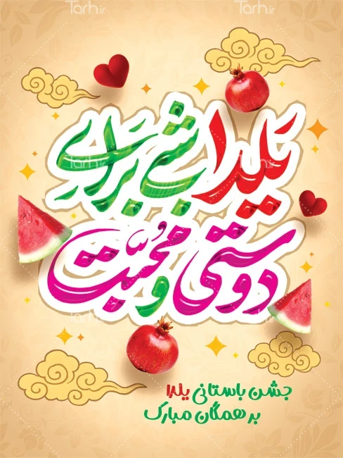 بنر خام یلدا با تایپوگرافی یلدا شبی برای دوستی و محبت کد فایل 0658427
