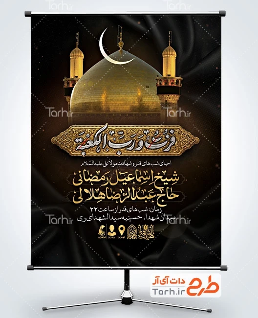 طرح بنر اطلاع رسانی شب قدر با فرمت psd و قابل ویرایش در نرم افزار فتوشاپ به صورت لایه باز توسط تیم طراحان طرح دات آی آر طراحی شده است. در طرح اطلاعیه شب قدر از تصاویر و المان های با کیفیت و متناسب با استاندارد چاپ استفاده گردیده است. طرح بنر اطلاع رسانی شب های قدر شامل خوشنویسی فزت و رب الکعبه، جایگاه مکان و زمان مراسم، متن قابل ویرایش اطلاع رسانی مراسم شب قدر می باشد که المان های استفاده شده در طرح لایه باز بنر شب قدر قابلیت ویرایش، جابه جایی و تغییر سایز را دارا بوده و شما می توانید متناسب با سلیقه خودتان بنر لایه باز شهادت حضرت علی و شب قدر را ویرایش نمایید.