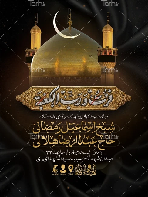 طرح بنر اطلاع رسانی شب قدر با خوشنویسی فزت و رب الکعبه کد فایل 0659218
