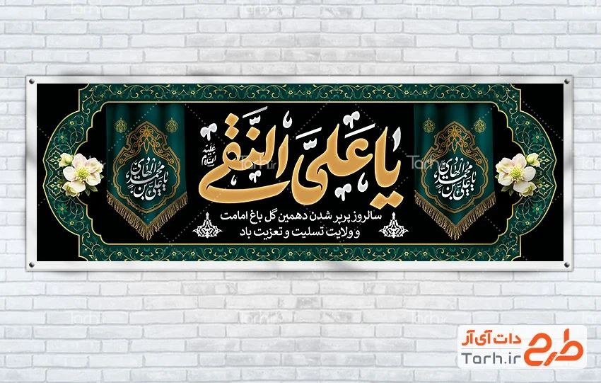 طرح پلاکارد آماده شهادت امام هادی با فرمت psd و قابل ویرایش در نرم افزار فتوشاپ به صورت لایه باز توسط تیم طراحان طرح دات آی آر طراحی شده است. در طرح لایه باز شهادت امام هادی از تصاویر و المان های با کیفیت و متناسب با استاندارد چاپ استفاده گردیده است. پلاکارد لایه باز شهادت امام هادی شامل تایپوگرافی یا علی النقی و وکتور گل می باشد که المان های استفاده شده در طرح بنر شهادت امام هادی قابلیت ویرایش، جابه جایی و تغییر سایز را دارا بوده و شما می توانید متناسب با سلیقه خودتان طرح لایه باز پلاکارد شهادت امام هادی را ویرایش نمایید.