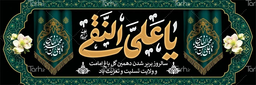 طرح پلاکارد آماده شهادت امام هادی دارای خوشنویسی یا علی النقی کد فایل 0673419