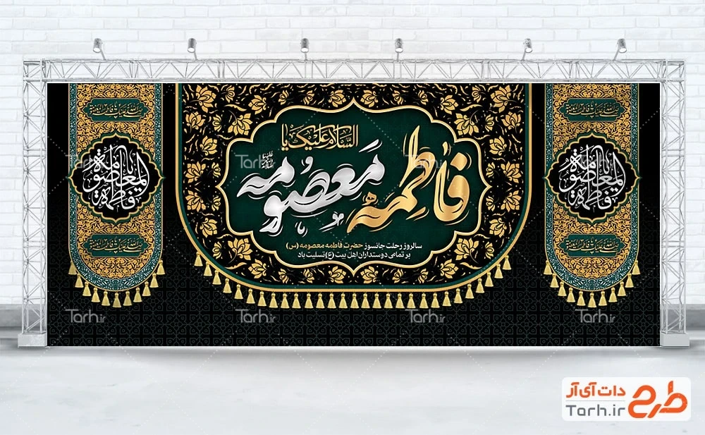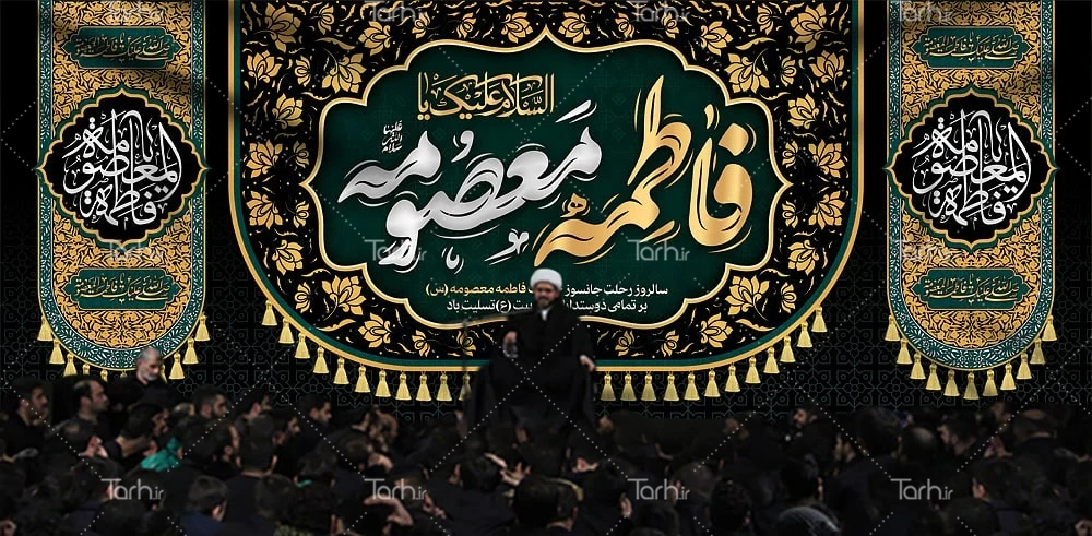 طرح بنر پشت سن وفات حضرت فاطمه معصومه اغلب در سایز 3 در 7 متر طراحی می شود ولی با توجه به لایه باز بودن و کیفیت بالای طرح بنر پشت مداح رحلت حضرت معصومه، قابلیت ویرایش و تبدیل به سایز دلخواه و همچنین چاپ در ابعاد و متریال های مختلف (فلکس، پارچه و ...) را دارا می باشد. بنر 3 در 7 ، قابلیت چاپ بنر و لارج فرمت تا ابعاد 6 در 14 متر را بدون افت کیفیت دارد، همچنین برای ابعاد بزرگتر نیز در صورتی که فاصله بیننده تا بنر بیشتر از 8 متر باشد، بنر پشت منبری رحلت حضرت معصومه قابل چاپ و نصب بوده و افت کیفیت به چشم نمی آید. طرح بنر تسلیت شهادت حضرت معصومه به عنوان یکی از انواع بنر شهادت حضرت معصومه لایه باز، علاوه بر نصب در استندها و بیلبورد های شهری، بیشتر به منظور طراحی دکور سِن و جایگاه سخنرانی در همایش ها، سمینارها و مراسمات ملّی و همچنین در مراسمات مذهبی به منظور تزئین دکور و پشت منبری سخنران استفاده می شود. مخمل های مذهبی و چاپ مخمل این طرحها به منظور تزیین دکور مخمل در مراسمات مذهبی و هیئت ها کاربرد زیادی دارد.