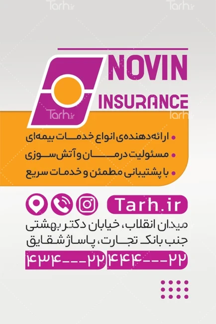 طرح آماده کارت ویزیت دفتر بیمه نوین به صورت لایه باز کد فایل 0693745