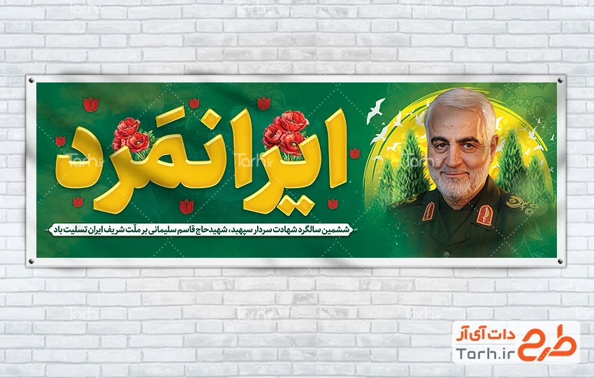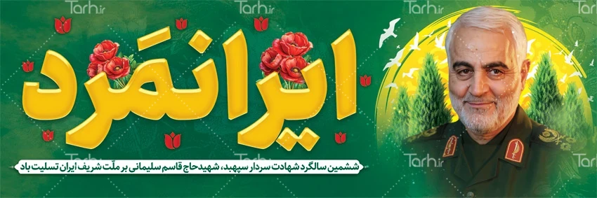 طرح پلاکارد آماده سالگرد شهادت سردار سلیمانی دارای عنوان شعار ایرانمرد کد فایل 0698132