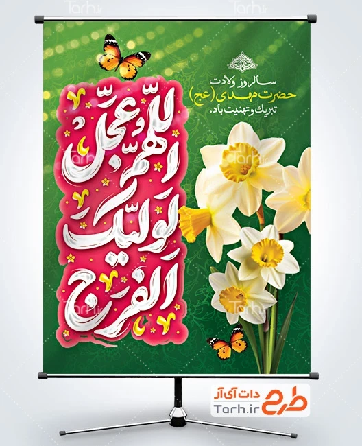 پوستر خام تبریک ولادت امام زمان با تایپوگرافی اللهم عجل لولیک الفرج کد فایل 0716423