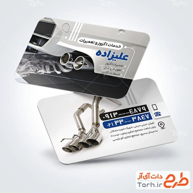 طرح کارت ویزیت اگزوز سازی با فرمت psd و قابل ویرایش در نرمافزار فتوشاپ بهصورت لایه باز و پشت و رو (دو رو) توسط تیم طراحان طرح دات آی آر طراحی شده است. طرح کارت ویزیت اگزوزسازی از تصاویر و المانهای باکیفیت و متناسب با استاندارد چاپ استفادهشده، همچنین نکات مهم در طرح کارت ویزیت مانند رنگبندی، رعایت حاشیه، فاصلهها، فضای کافی برای درج متن، سایز و نوع فونت مناسب طراحی کارت ویزیت و ... رعایت گردیده است. نمونه کارت ویزیت رادیاتور سازی شامل محل درج مشخصات میباشد که المانهای استفادهشده در طرح کارت ویزیت تعمیر اگزوز خودرو قابلیت ویرایش، جابهجایی و تغییر سایز را دارا بوده و شما میتوانید متناسب باسلیقه خودتان کارت ویزیت لایه باز رادیاتور سازی را ویرایش نمایید، همچنین با تغییر تصاویر و متنها میتوانید طرح کارت ویزیت جوشکاری رادیاتور و اگزوز را به طرح کارت ویزیت کسب و کار مد نظر خود شخصی سازی نمایید.