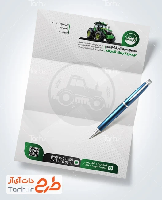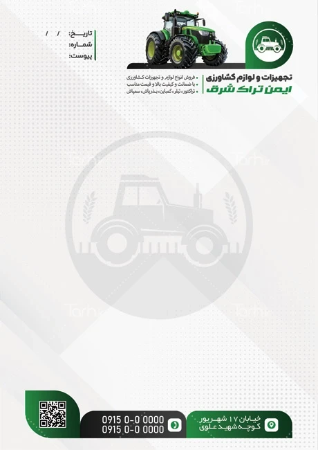 فایل لایه باز سربرگ لوازم کشاورزی با عکس تراکتور کد فایل 0741923